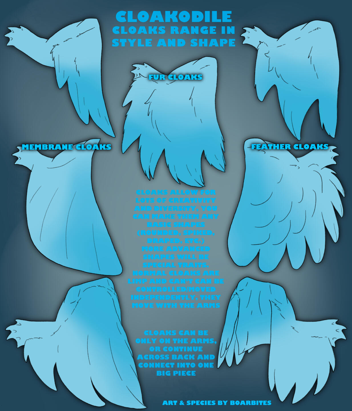 ✦ Basically, you can do anything you want to your Cloakodile's design when creating them! As long as it generally still resembles a Cloakie, you are good to go!